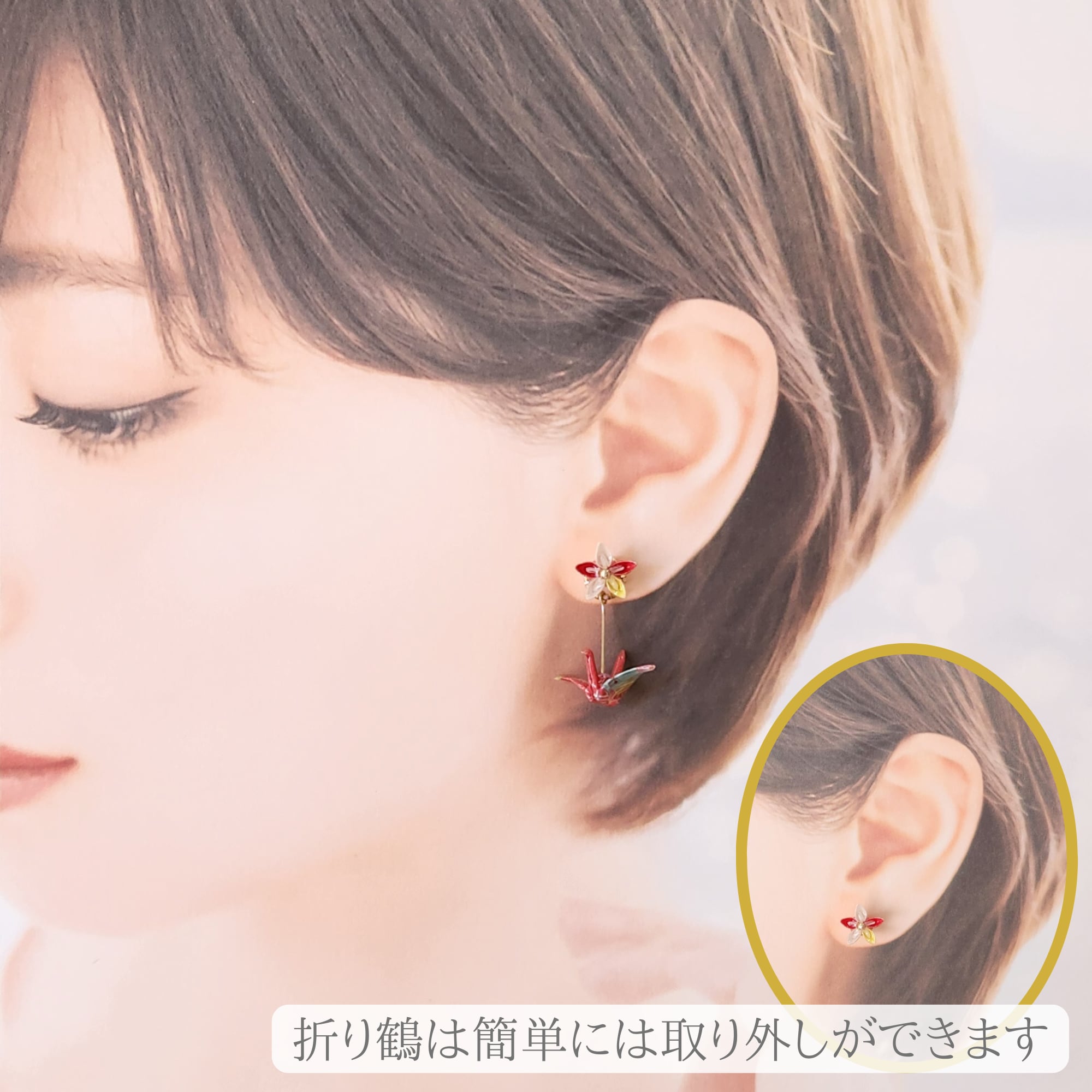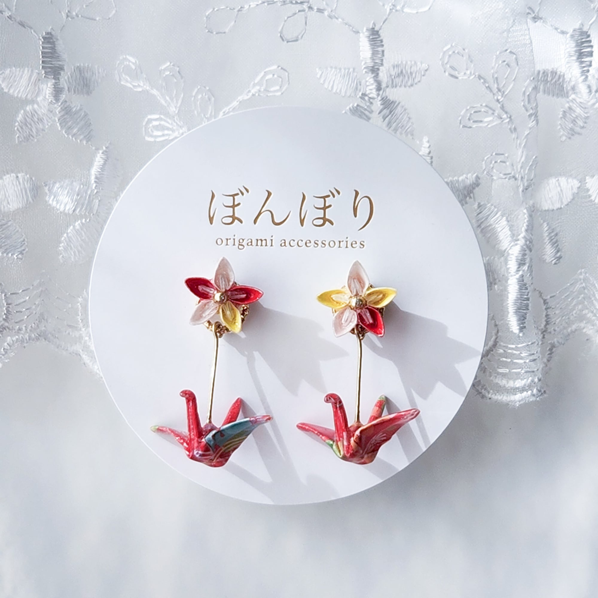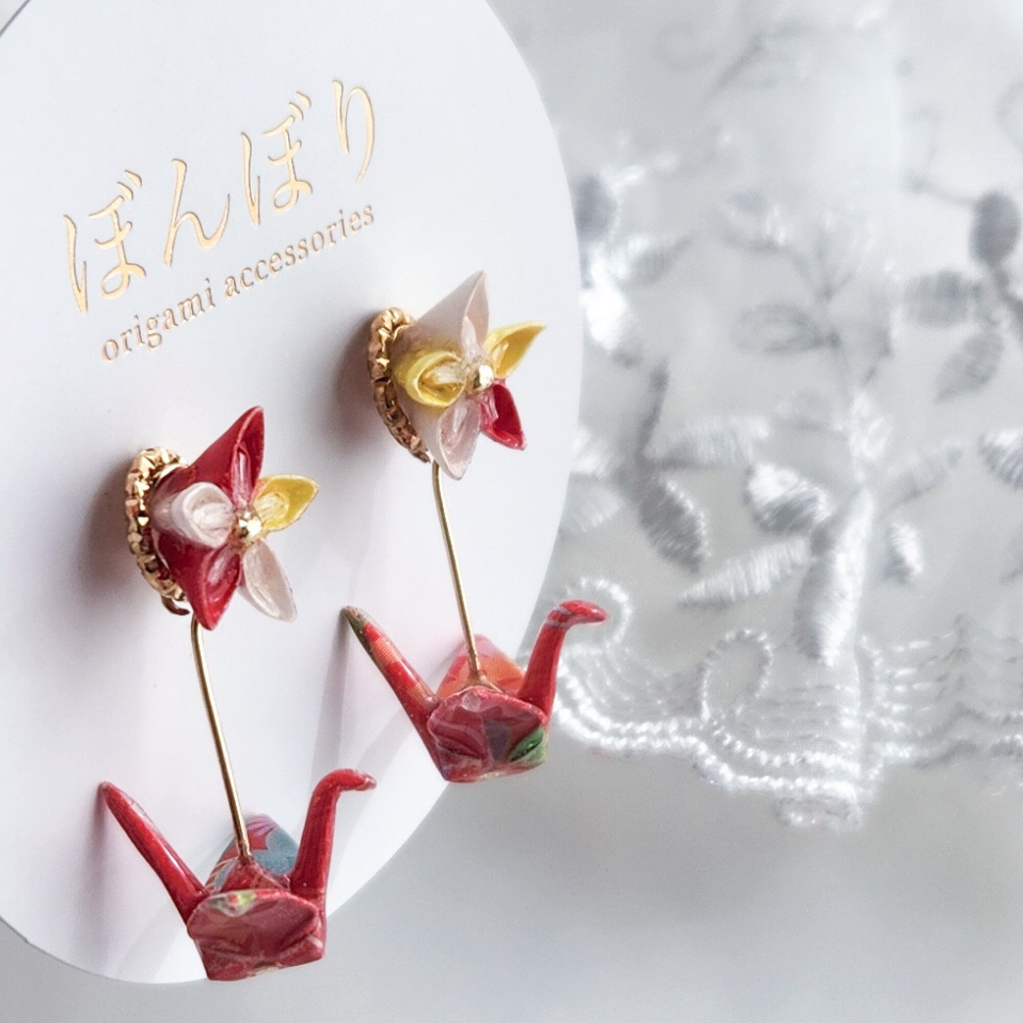 小さなお花と折り鶴を組み合わせた2wayアクセサリー。