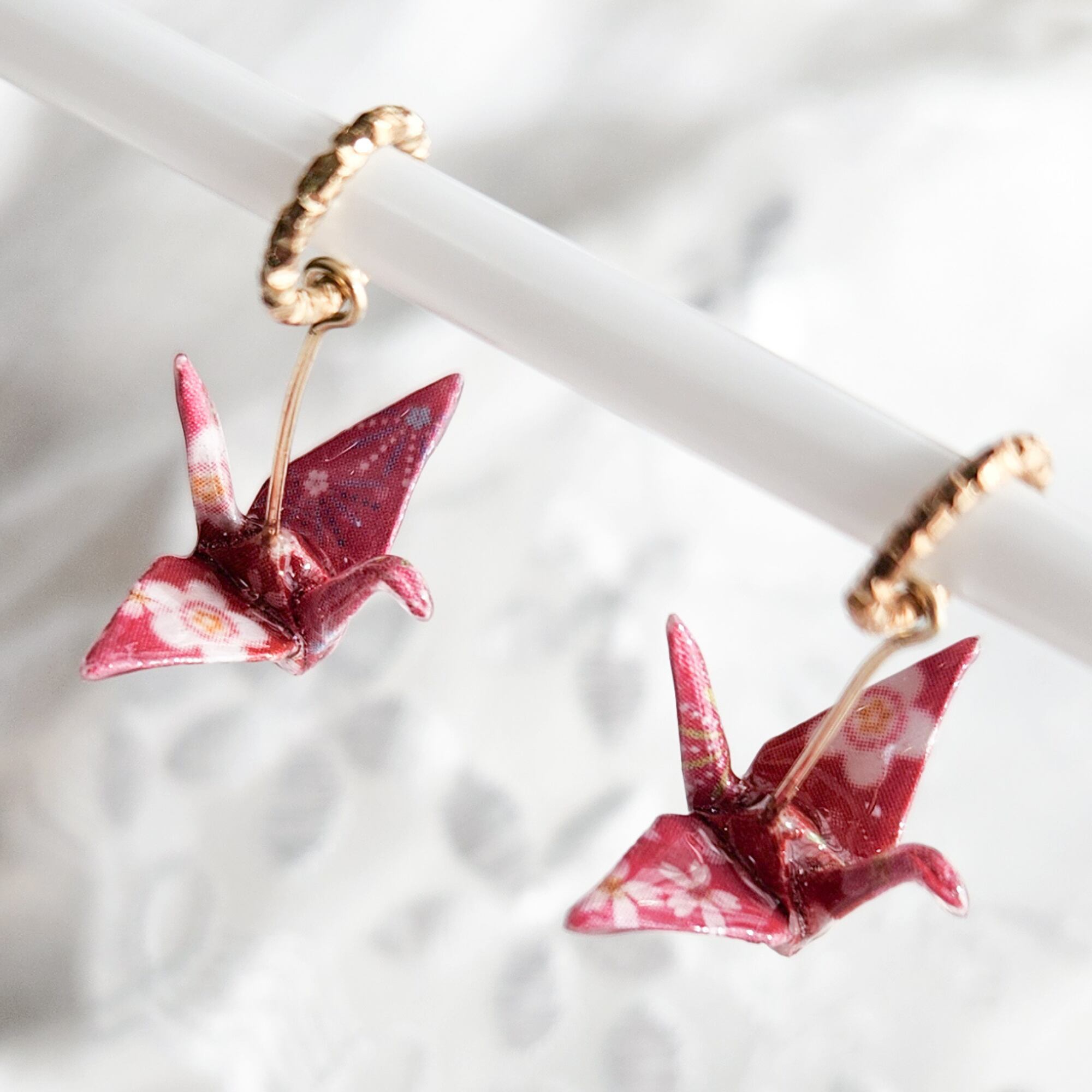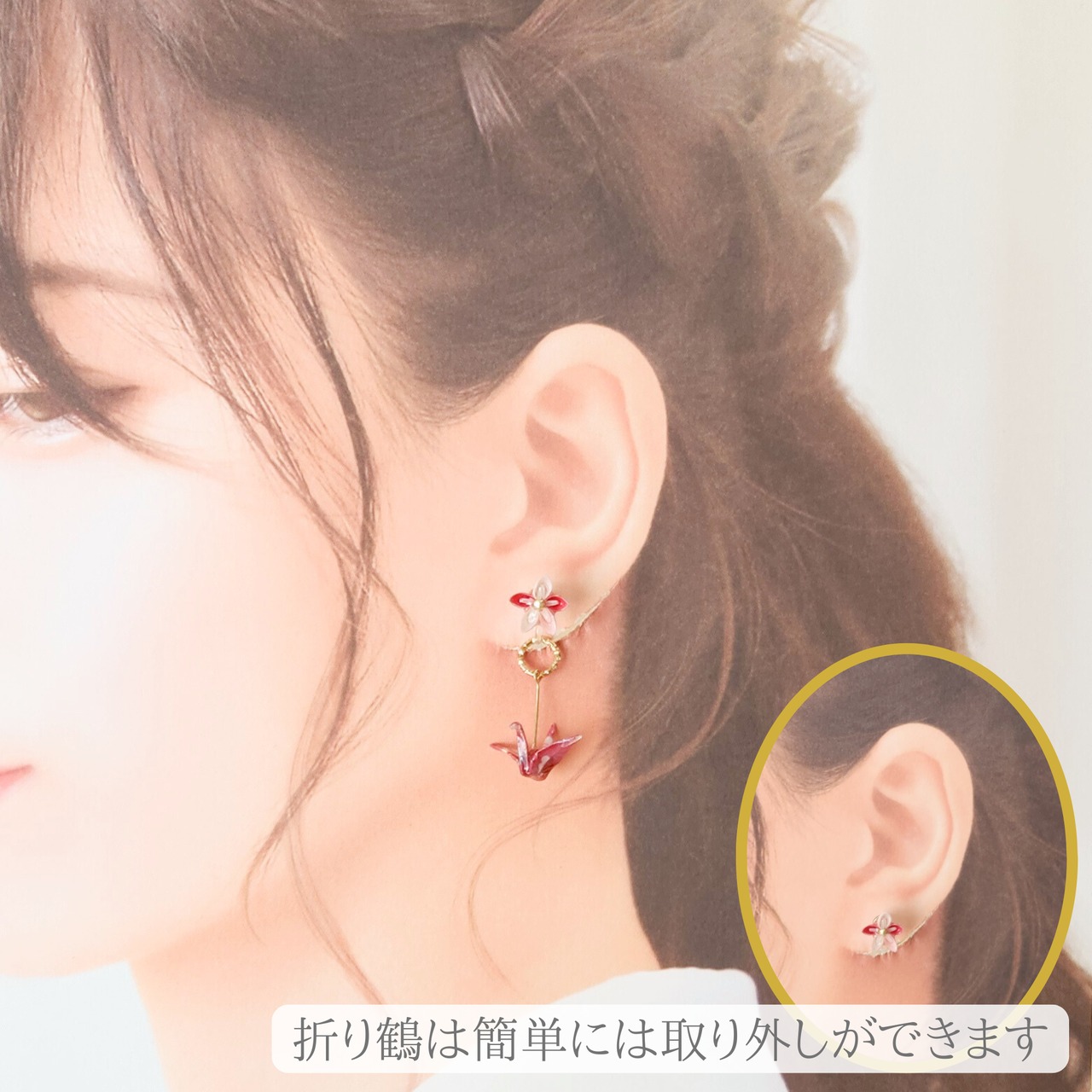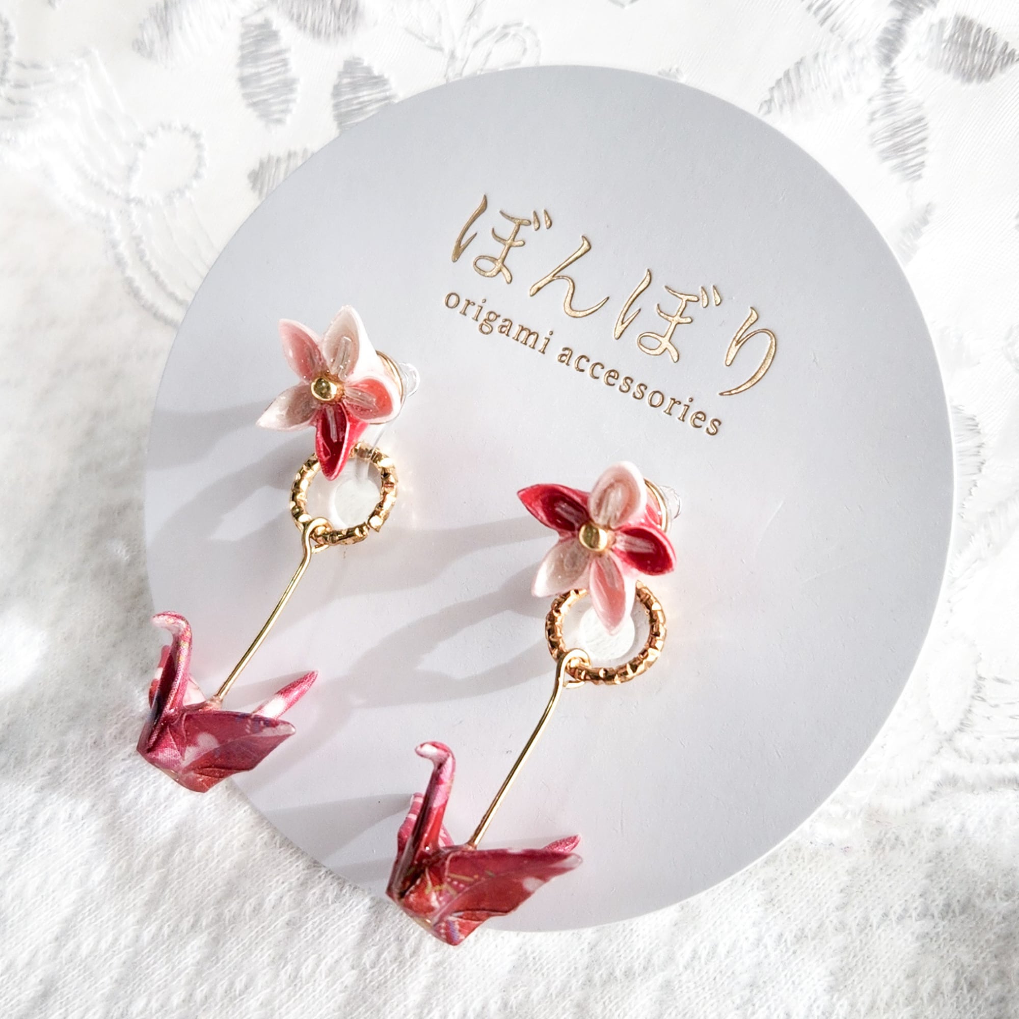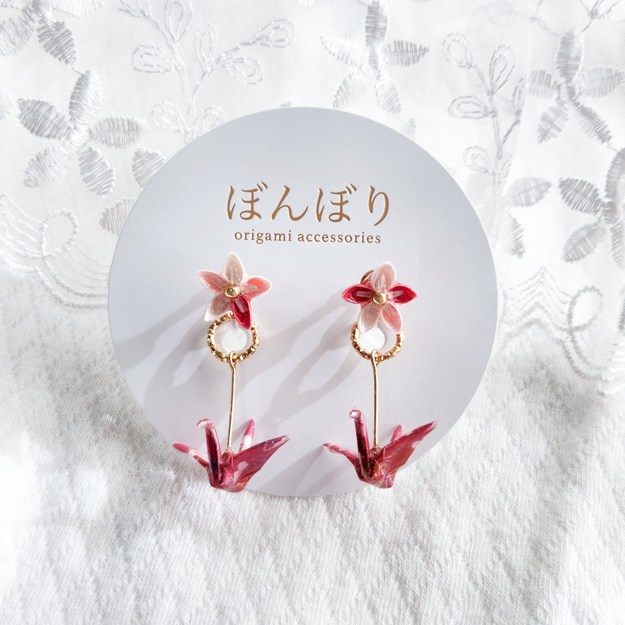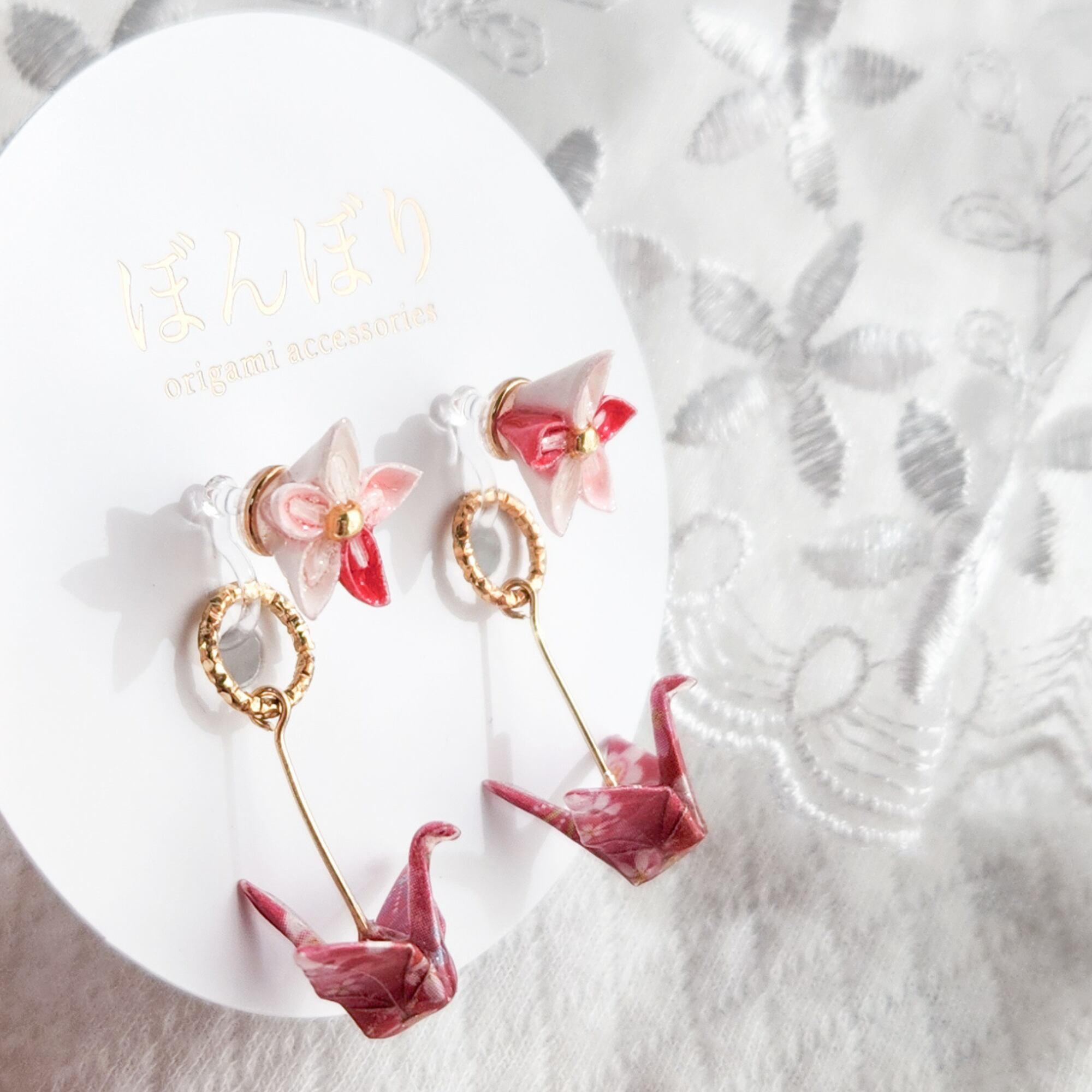 小さなお花と折り鶴を組み合わせた2wayアクセサリー。