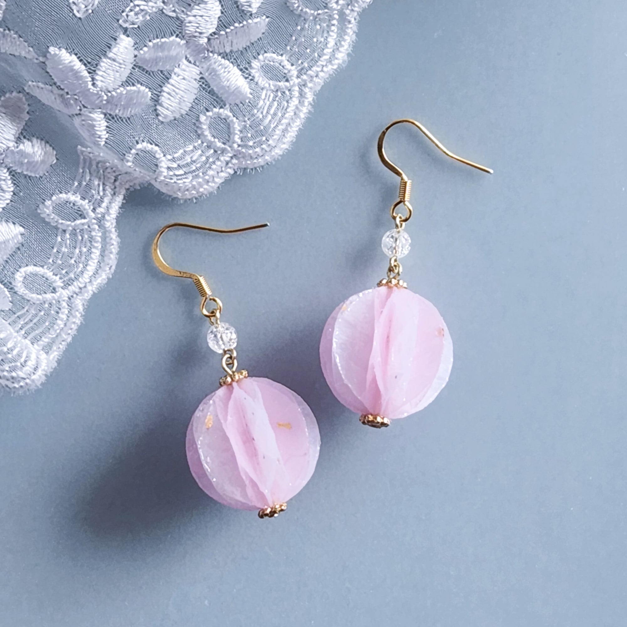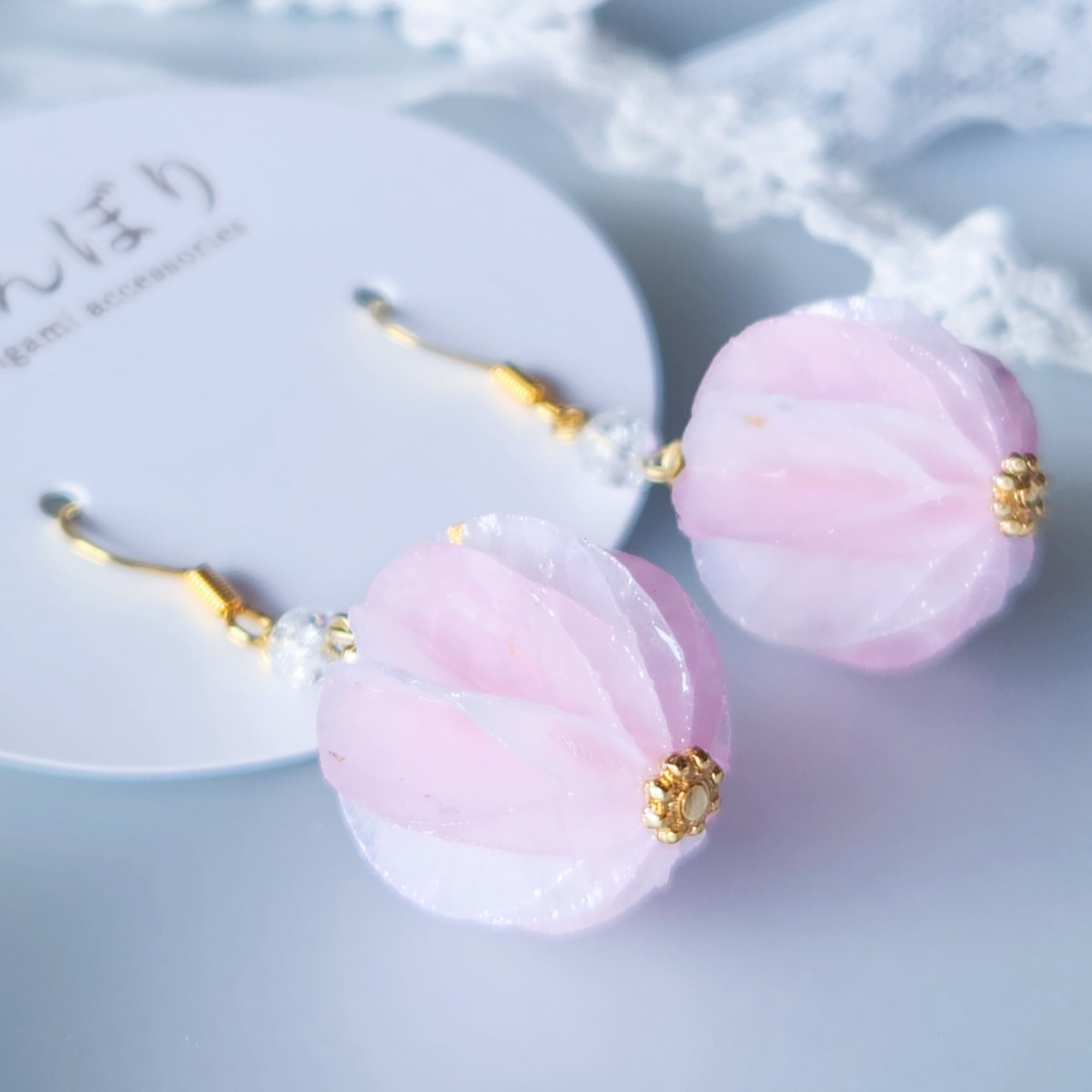 和紙、レジン、クラック水晶、真鍮